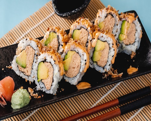 Tempura Prawns, Salmon, White Fish, Tuna, and Avocado.0