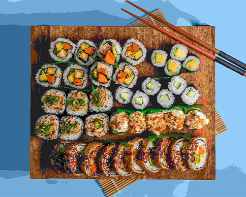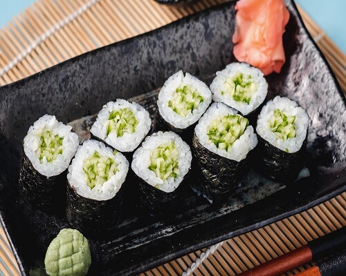 Vegan Lovers (39 pcs) Combo$5410x Vegan Hot Roll, 4x Hosomakis Avo, 4x Hosomaki Cucumber, 8x Vegan Uramaki, 5x Gunkan Vegan, 8x Mushroom and Vegan cheese Uramaki