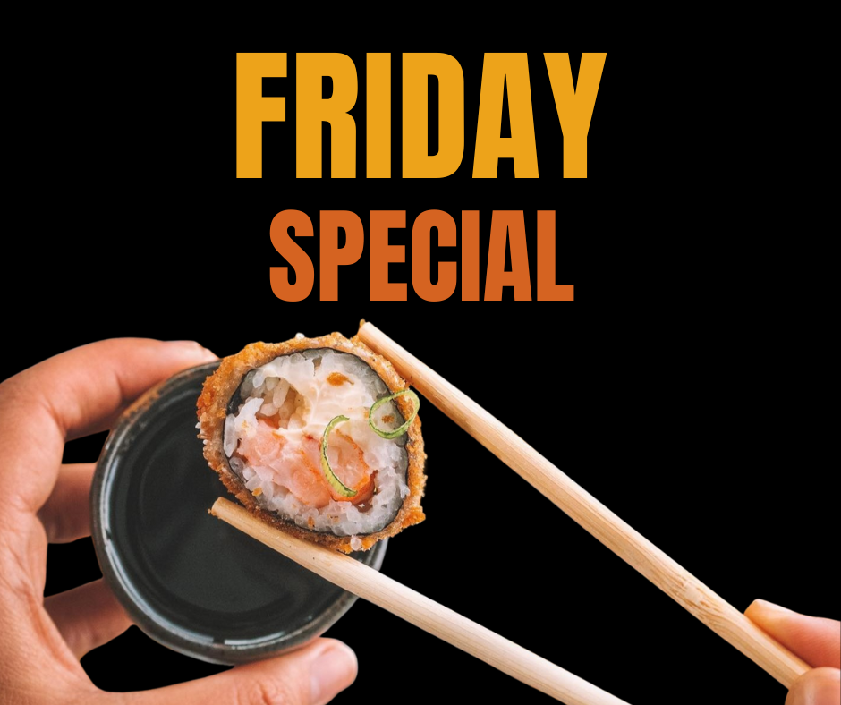 Friday Special$18.502 Hot Rolls for $18.50 (Salmon, Prawn or Vegetarian)